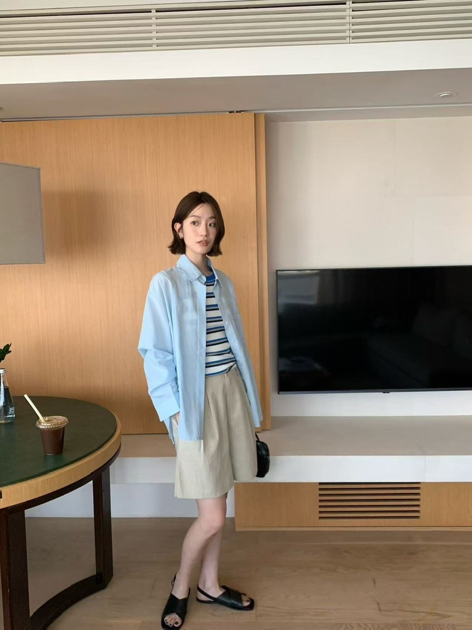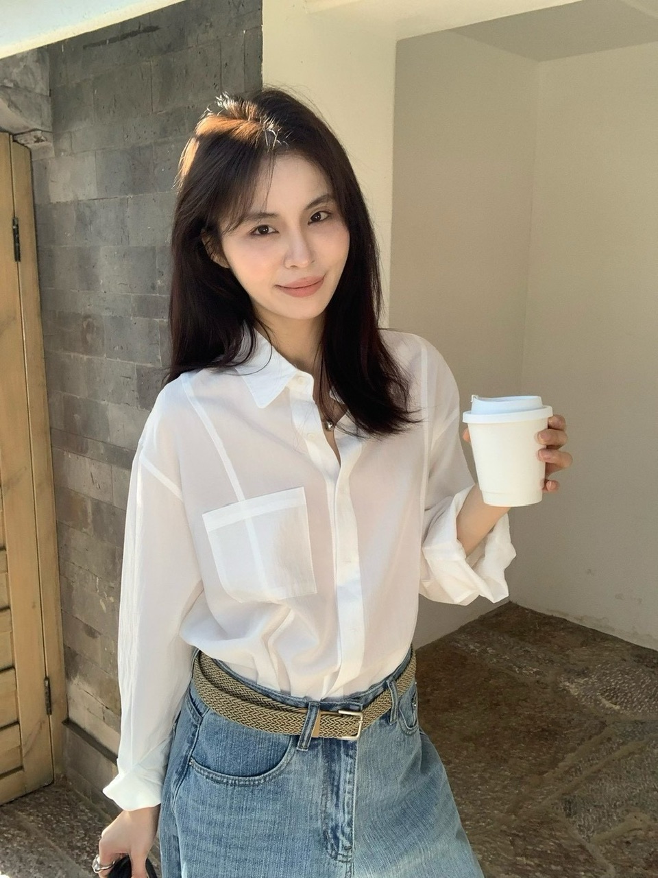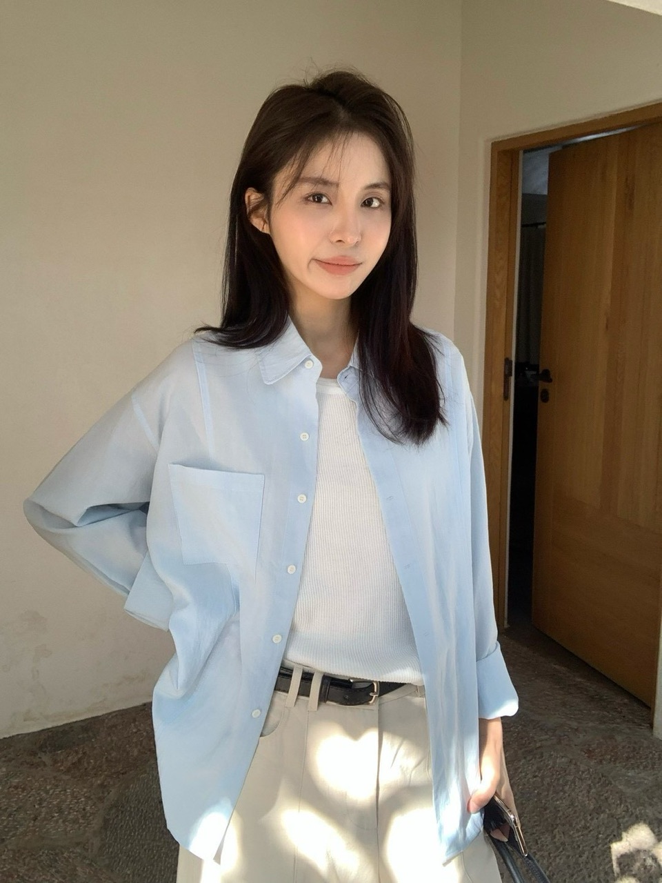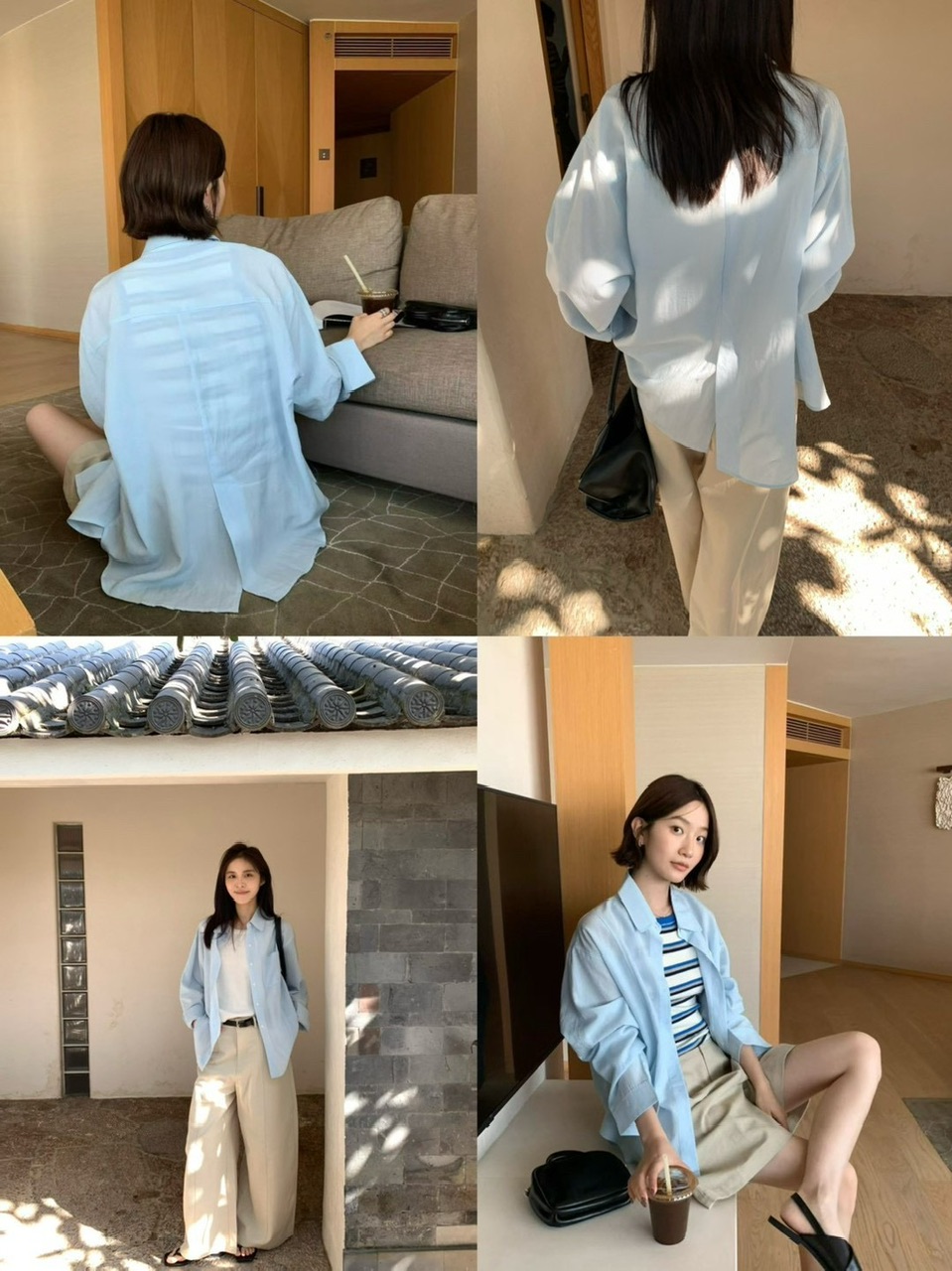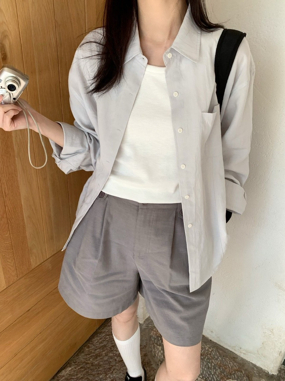 後開衩挺版麻料襯衫