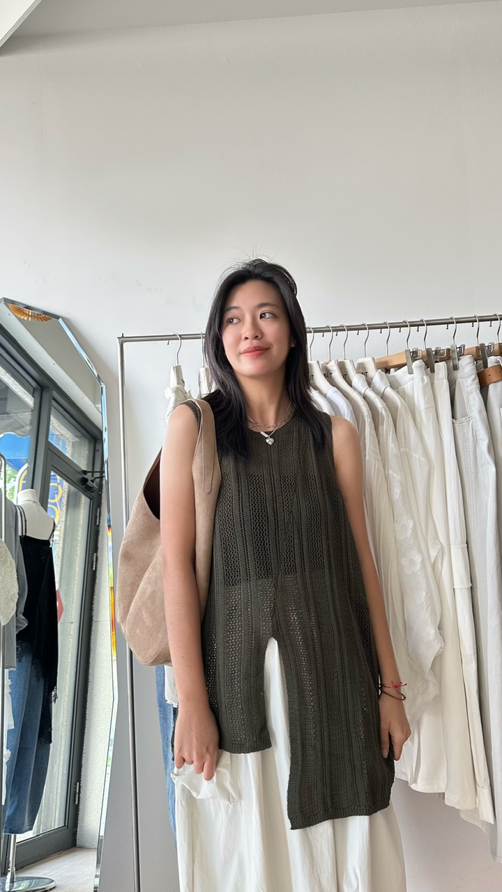 下開岔長針織背心(圓身女孩也可以)