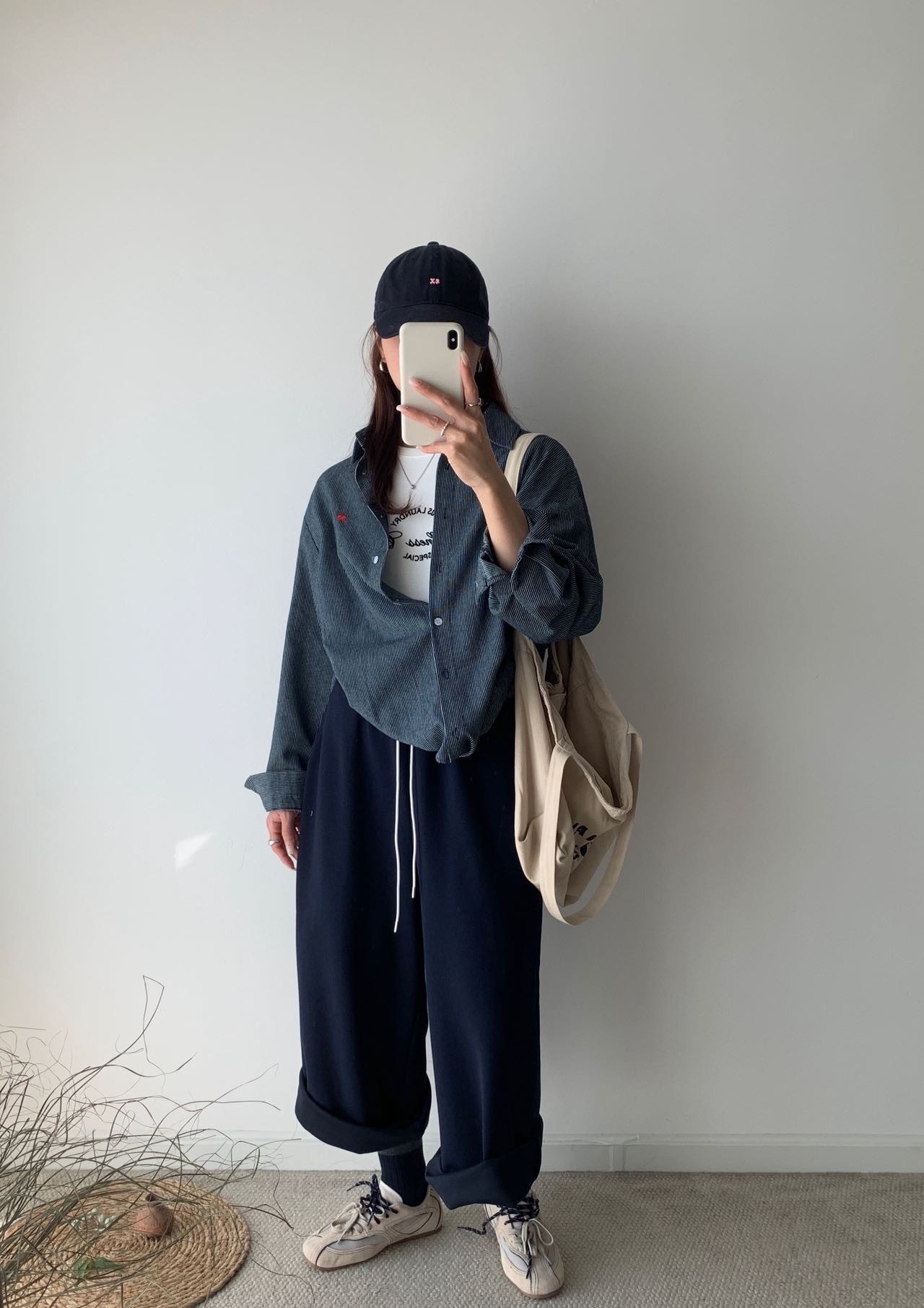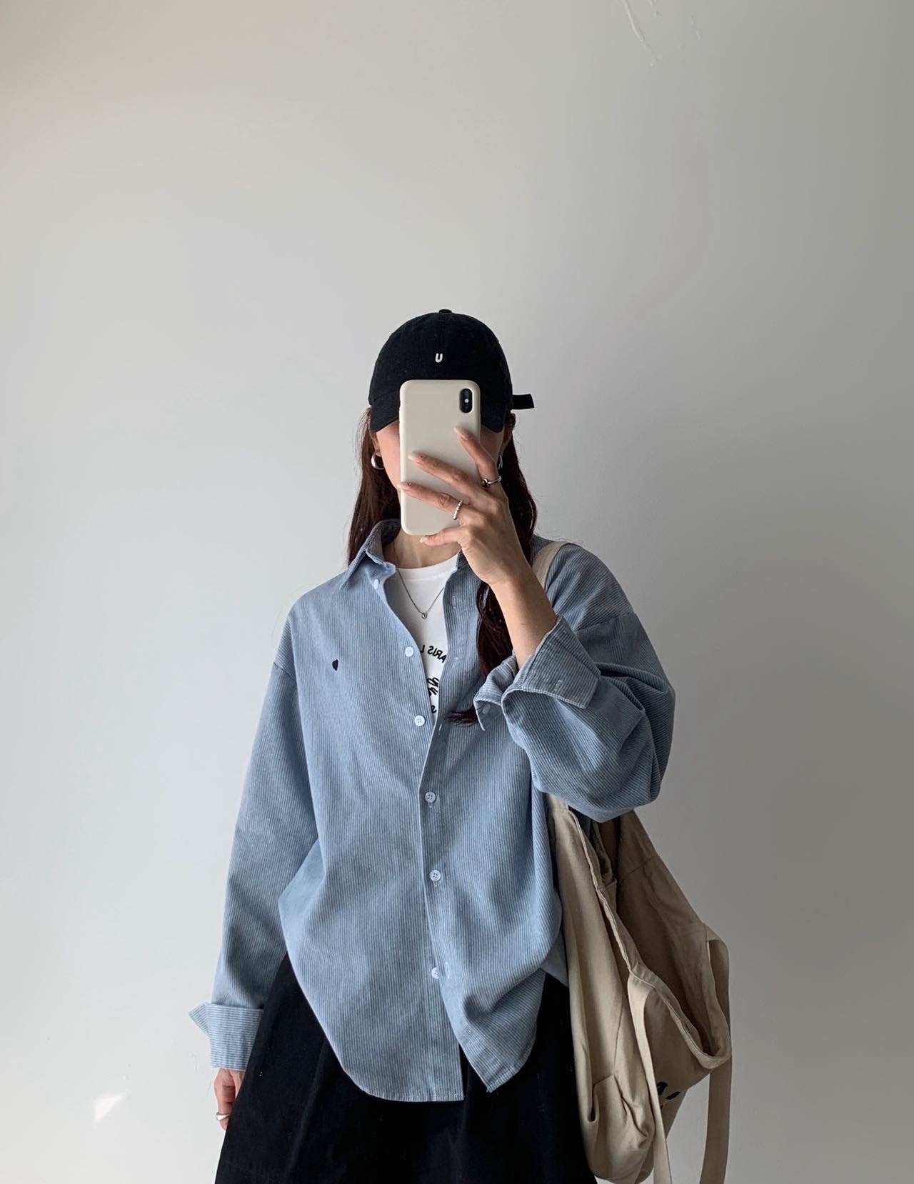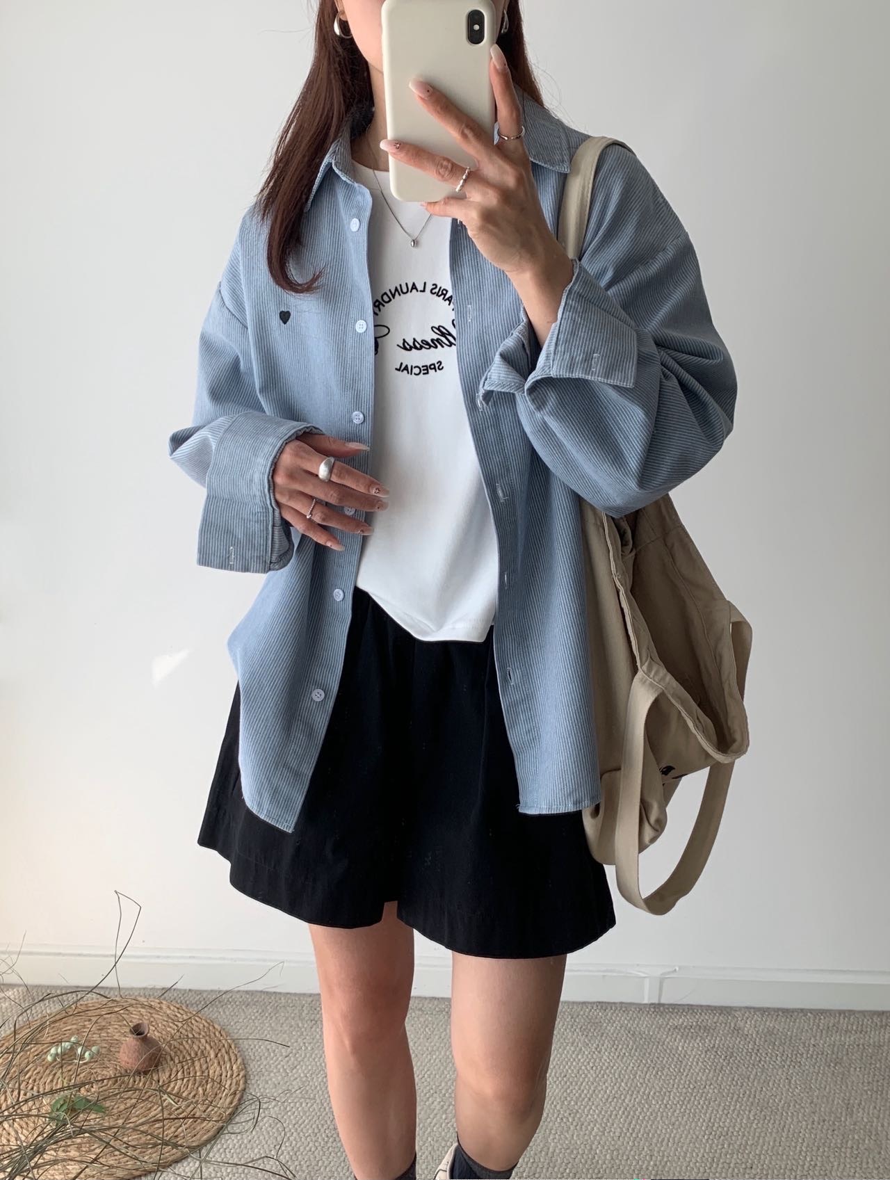 愛心刺繡牛仔襯衫