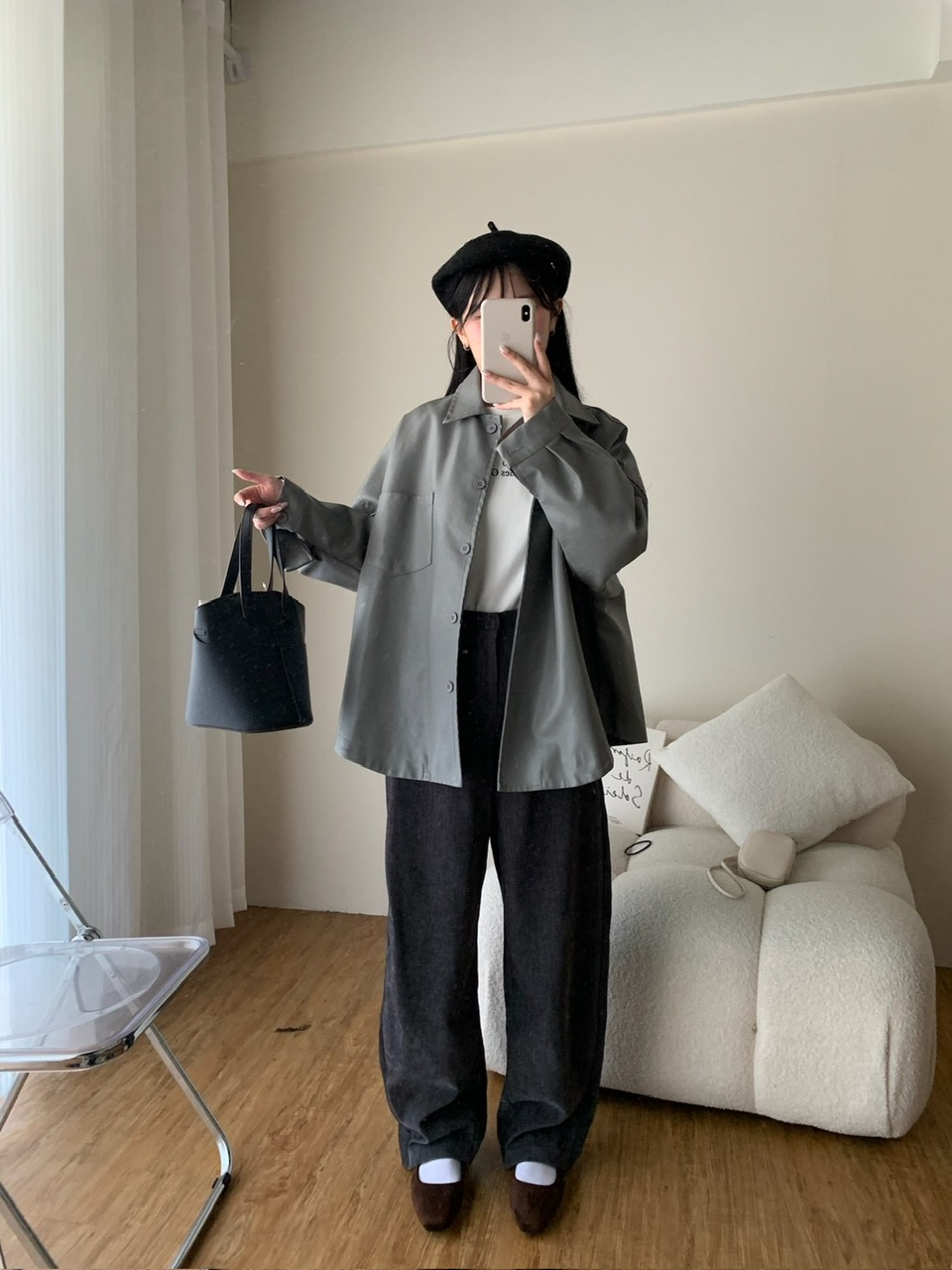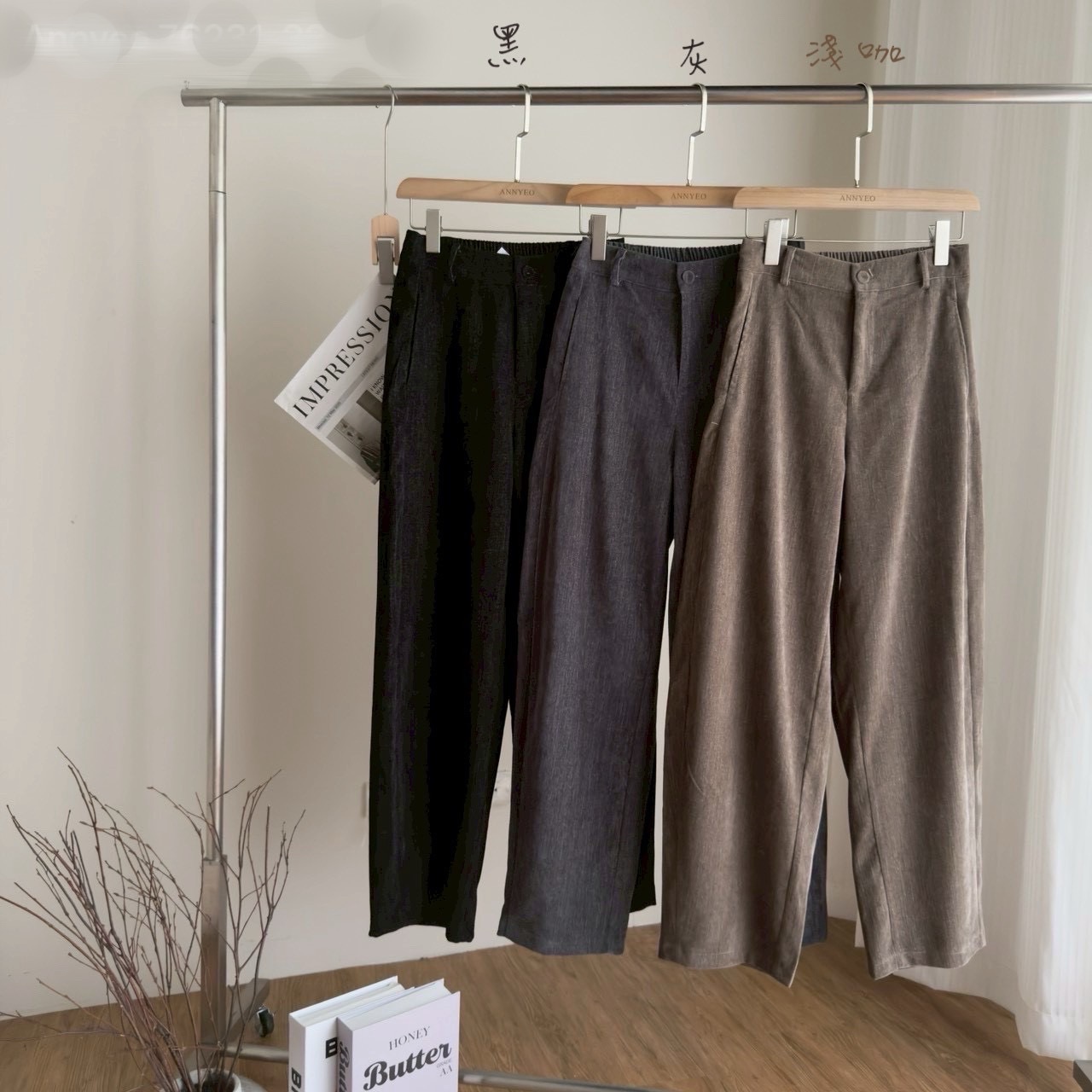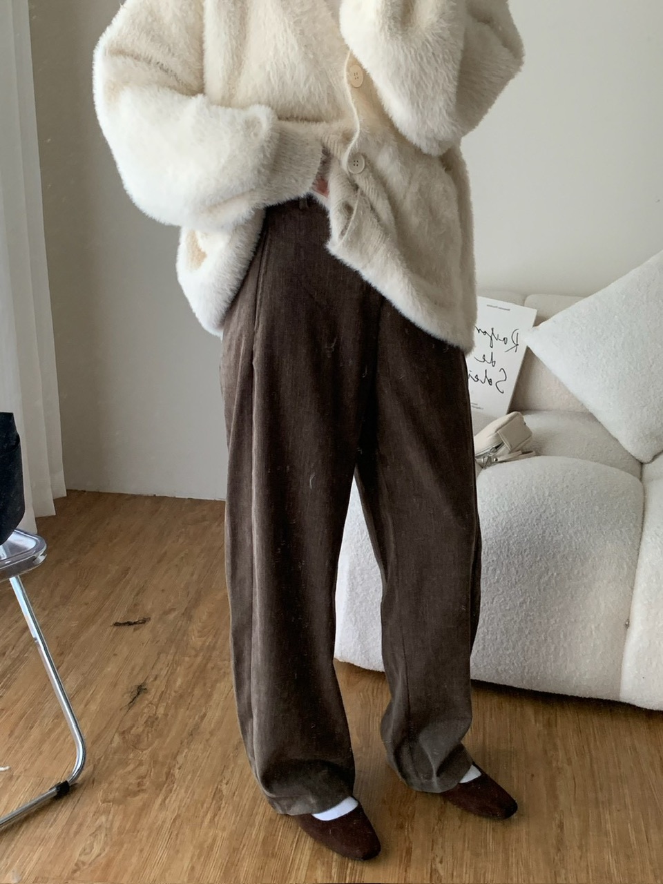 復古磨毛直筒褲