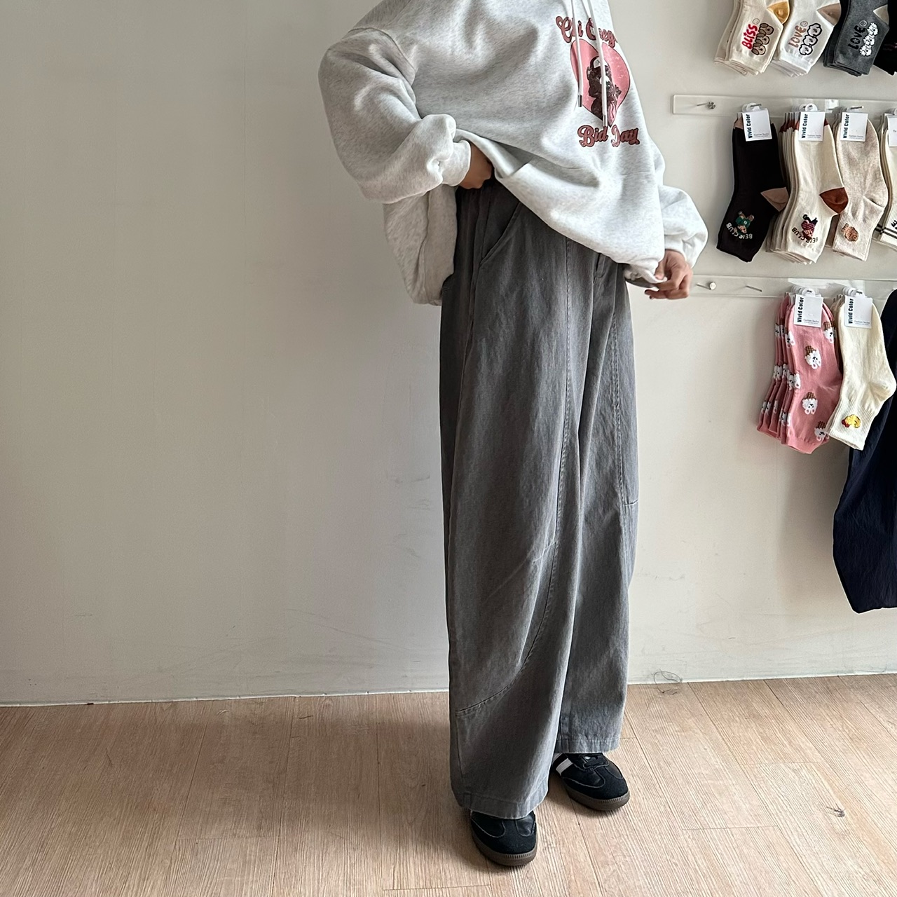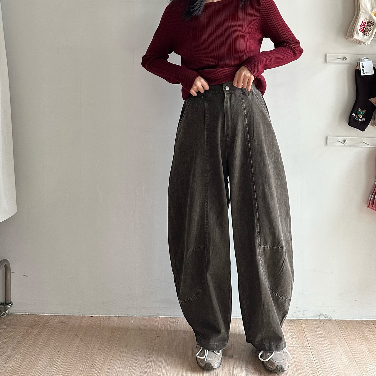 春天的棉質繭型中車線褲