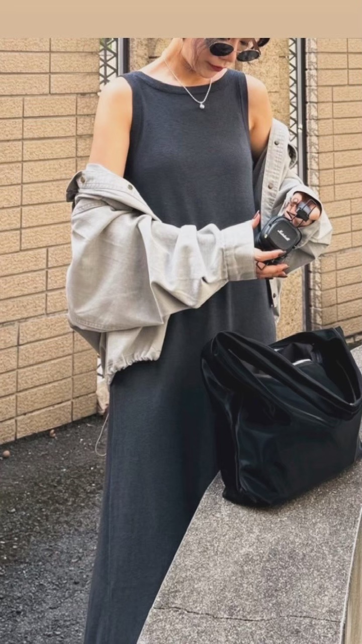 削肩針織洋裝